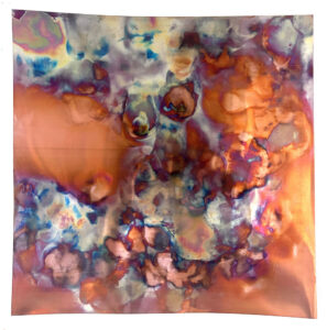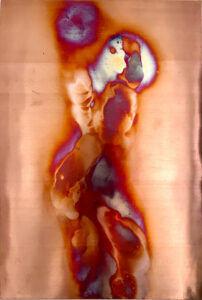 La série des Cuivres Organiques racontent l'oxydation d'une matière tout en déployant un spectre, celui du corps aux frontières de l'abstraction, au plus proche de la lumière et de son miroitement.